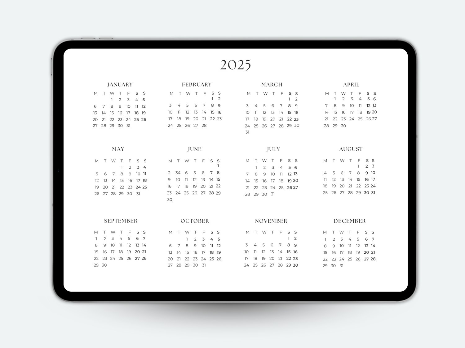 Printable Calendar | Digital Calendar Template | 2025